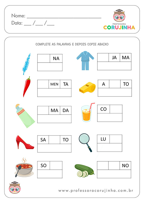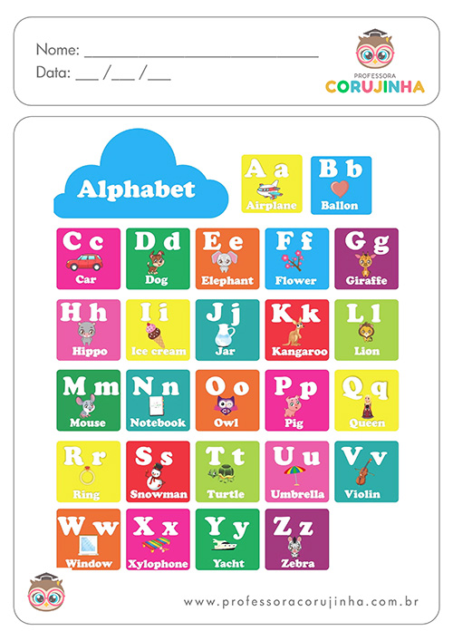 Com a Professora Corujinha, pais e professores têm acesso a atividades prontas e organizadas para imprimir, ideais para desenvolver leitura, escrita, raciocínio e inglês de forma leve e prática.